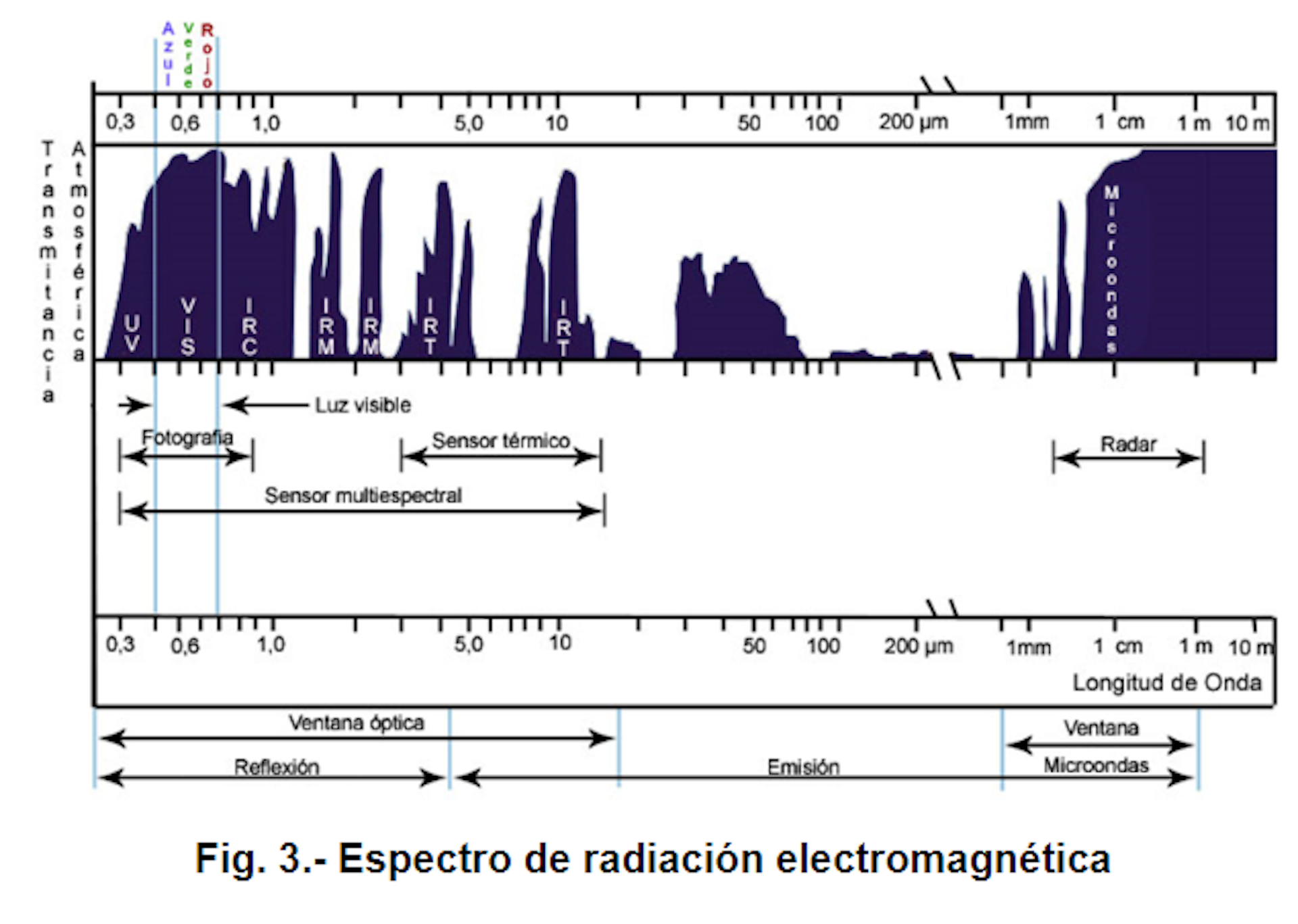 Este curioso ejemplo nos recuerda que el ser humano percibe solo la radiación visible. Por eso no es capaz de apreciar otros fenómenos que ocurren a su alrededor, que tienen lugar en la llamada ventana óptica del espectro electromagnético, la parte izquierda del siguiente gráfico: